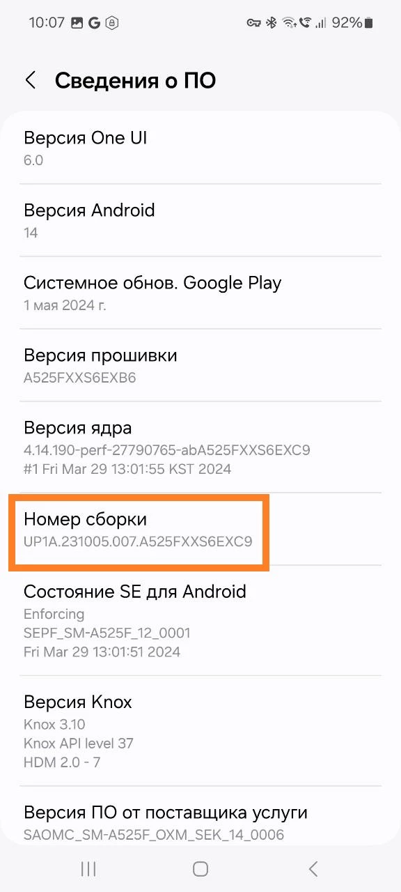 - Найдите пункт "Номер сборки" и нажмите на него 5-8 раз;