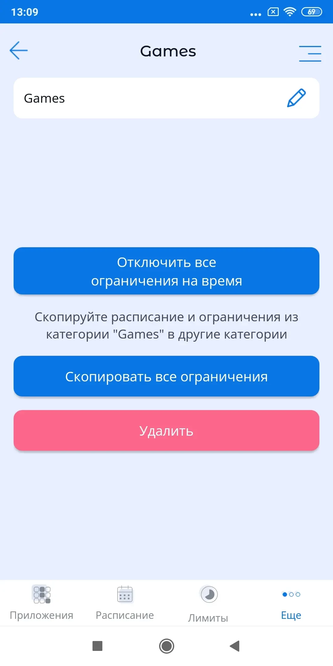 Приложения в этой категории будут работать в рамках лимита, который установили родители, а после истечения времени, приложения будут блокироваться.