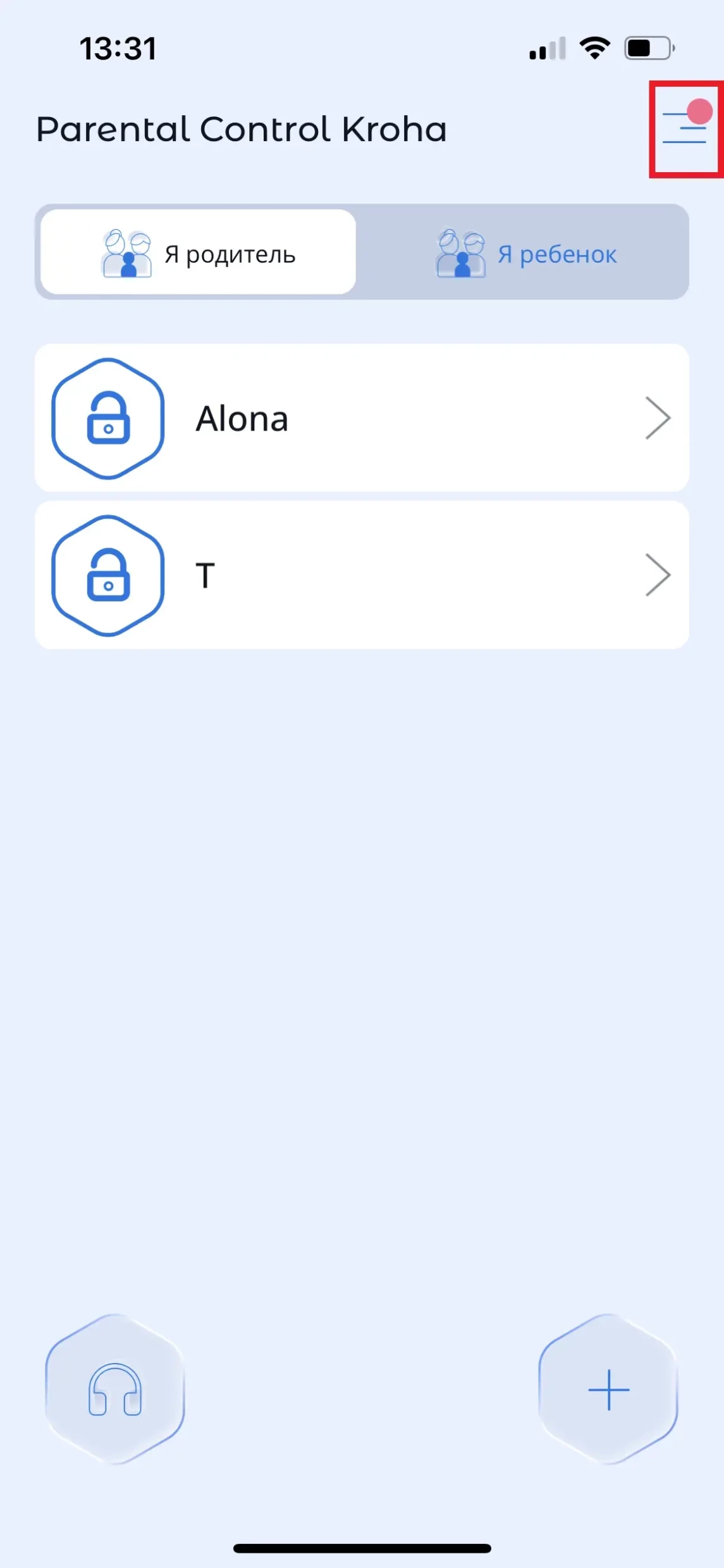 - Включение/отключение биометрической верификации на смартфоне родителя