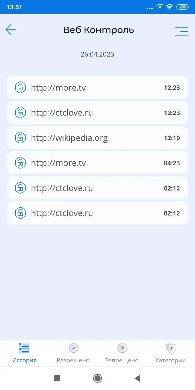 WEB – контроль (Android)