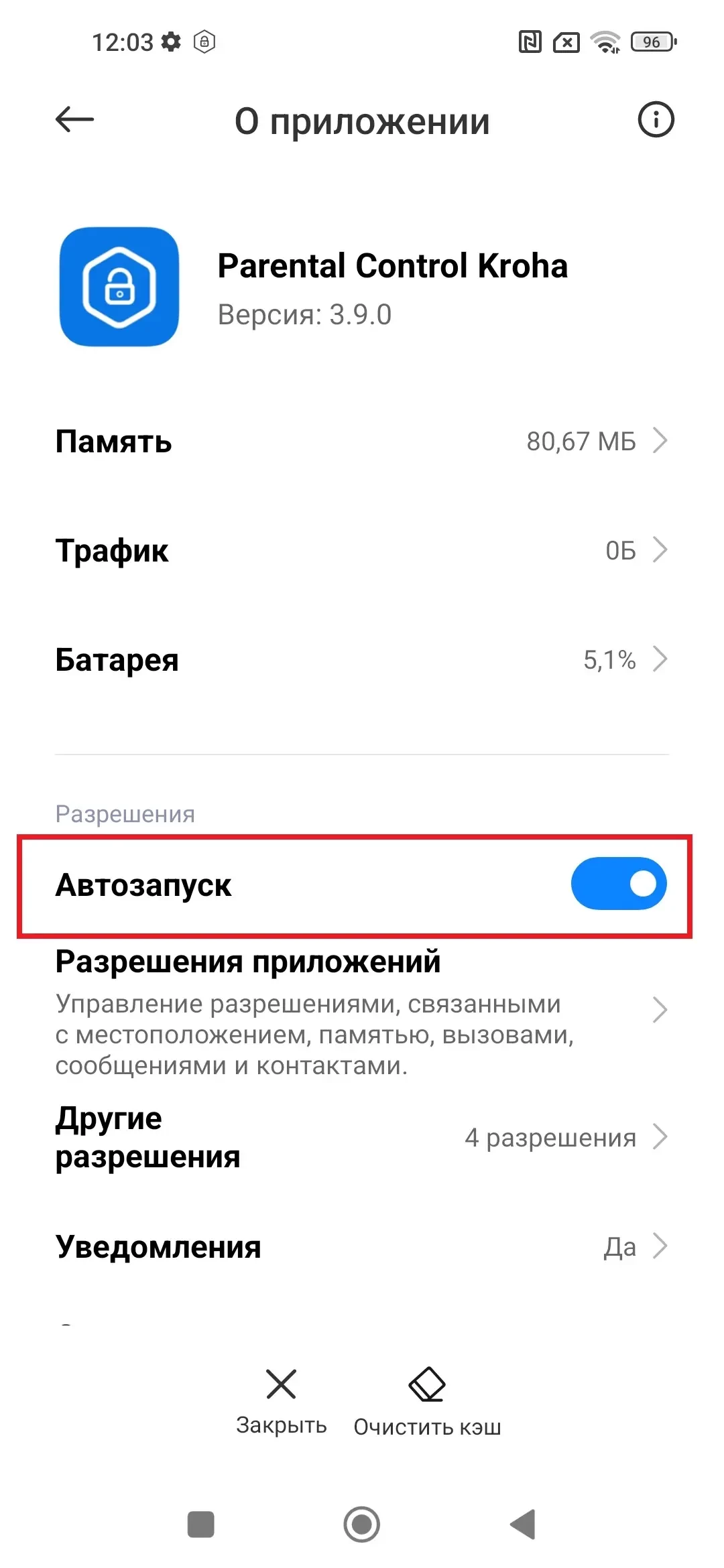 - «Автозапуск» и «Контроль фоновой активности», активируйте эти функции для того, чтобы приложение Parental Control Kroha запускалось автоматически при включении смартфона и чтобы приложение всегда работало в фоновом режиме и контролировало устройство ребенка.