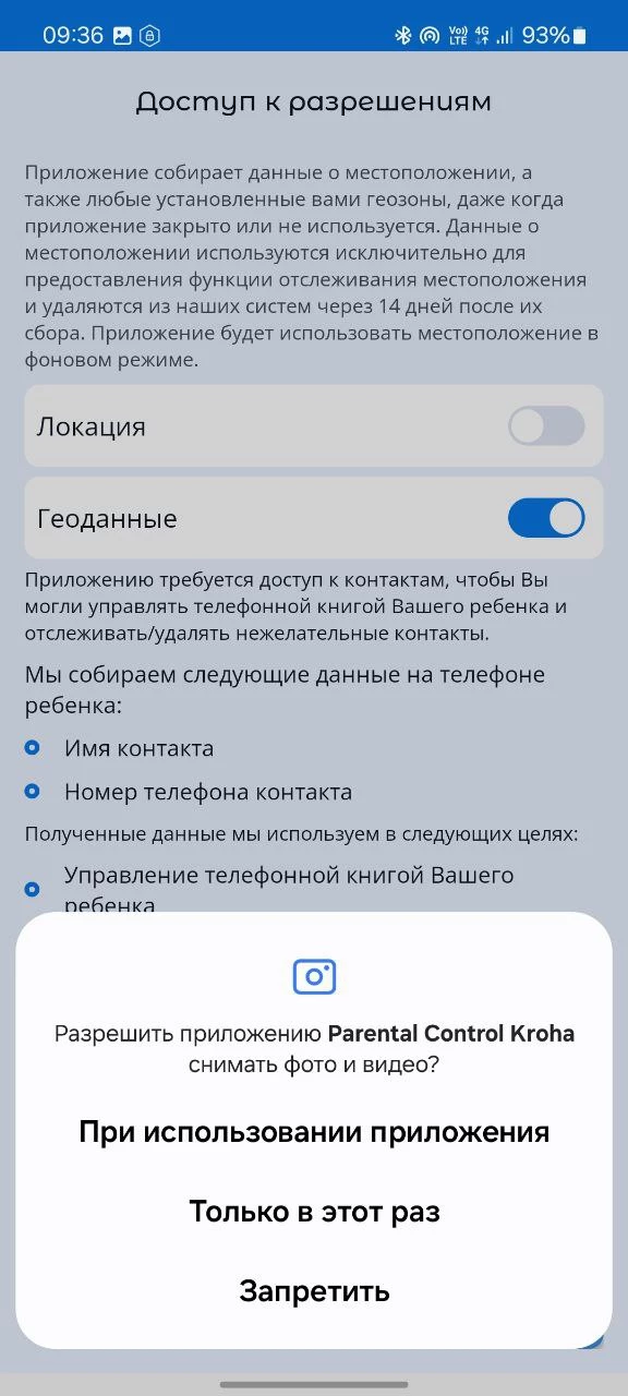 - «Снимать фото и видео», «Доступ к мультимедиа» - если Вы хотите получать последние фотографии и картинки, сделанные ребенком или сохраненные в галерее;