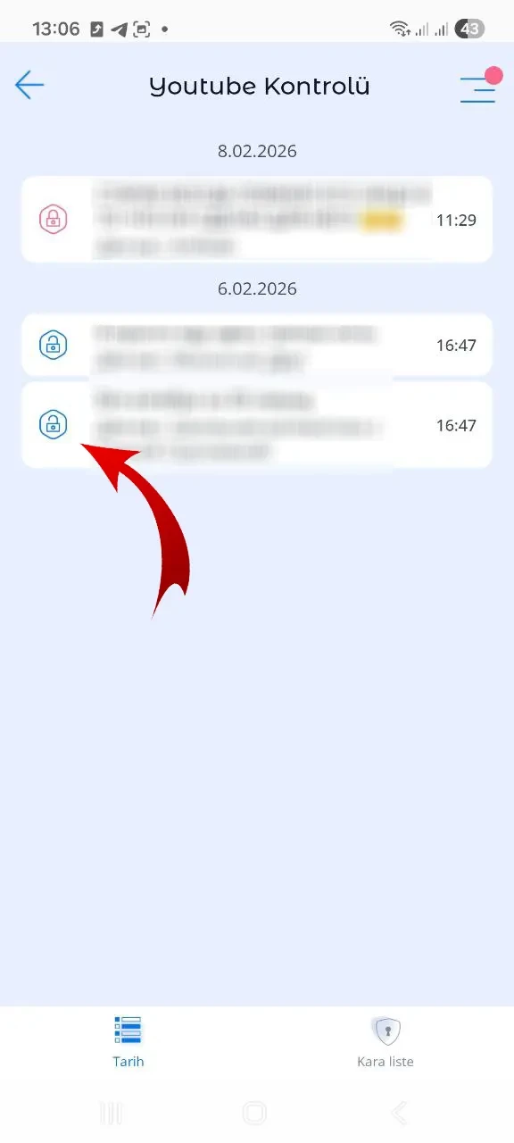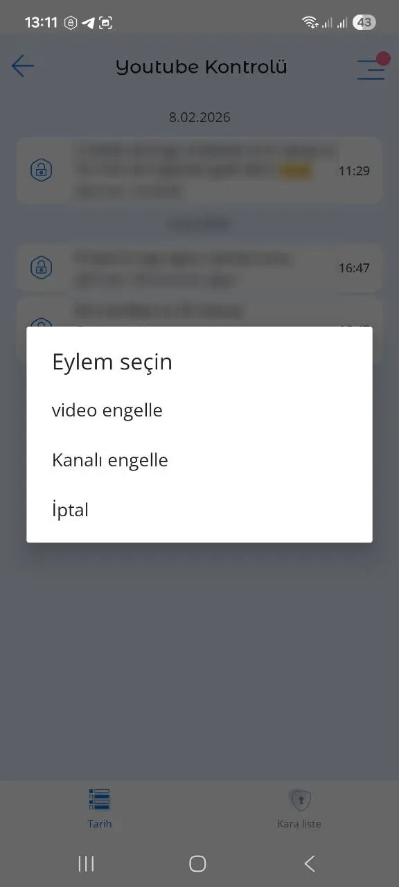 Çocuğun izlediği YouTube videolarının geçmişi. İstenmeyen video veya YouTube kanalının engellenmesi, kara liste oluşturma seçeneği; YouTube video engelleme, YouTube zaman sınırları, YouTube kısıtlamaları, YouTube’a nasıl kısıtlama koyulur, YouTube kanal bloklama.