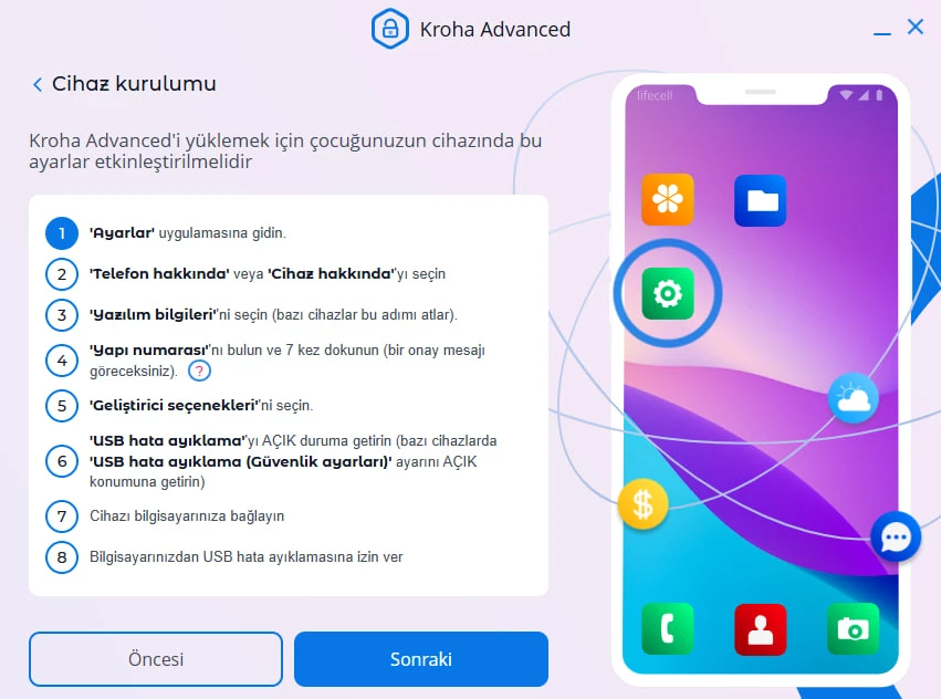 Bazı cihazlarda “Debug by USB” anahtarının yanında geliştirici seçeneklerinde “Setup by USB” ve “Debug by USB (security settings)” anahtarları da bulunur. Çocuğun cihazında bu anahtarları görürseniz, etkinleştirin.