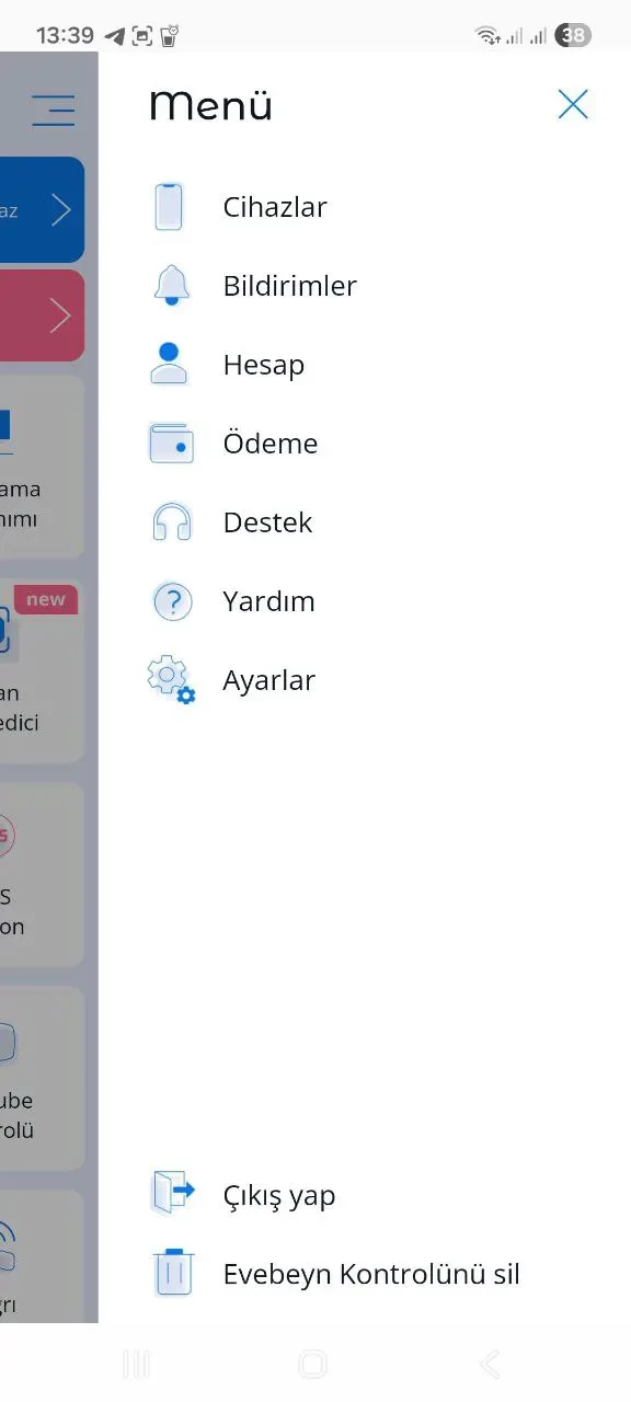 Kullanıcılar, uygulamanın menüsünde aşağıdaki seçenekleri bulabilirler: