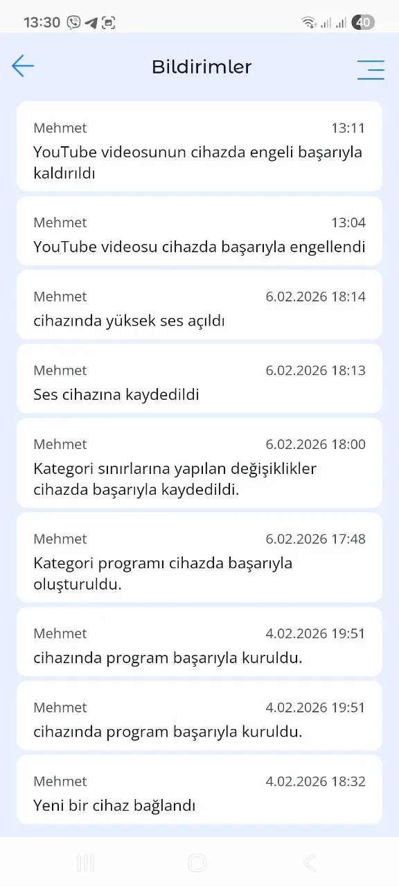 2. Bildirimler. Burada, çocuğun telefonundaki olaylara dair (geo-bölgeden çıkma, yeni uygulama kurulumu, uygulama için kritik izinlerin kapatılması) önemli bildirimleri bulabilirsiniz.