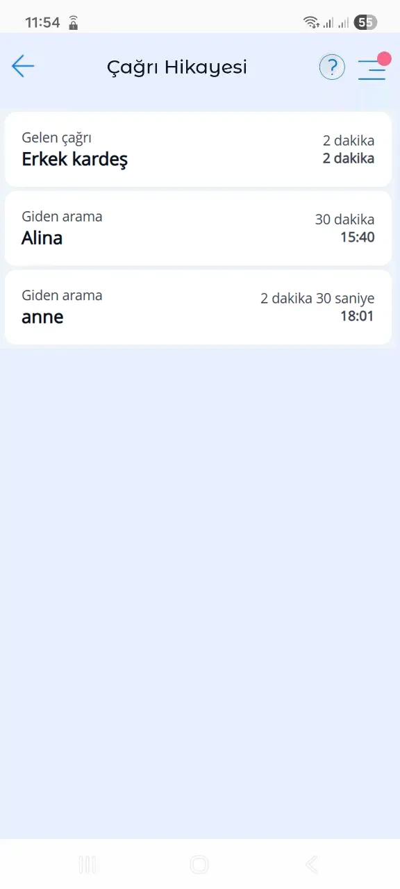 Bu işlev, kullanıcının akıllı telefonda yapılan (gelen, giden, kaçırılan) arama geçmişini görmesine olanak tanır.