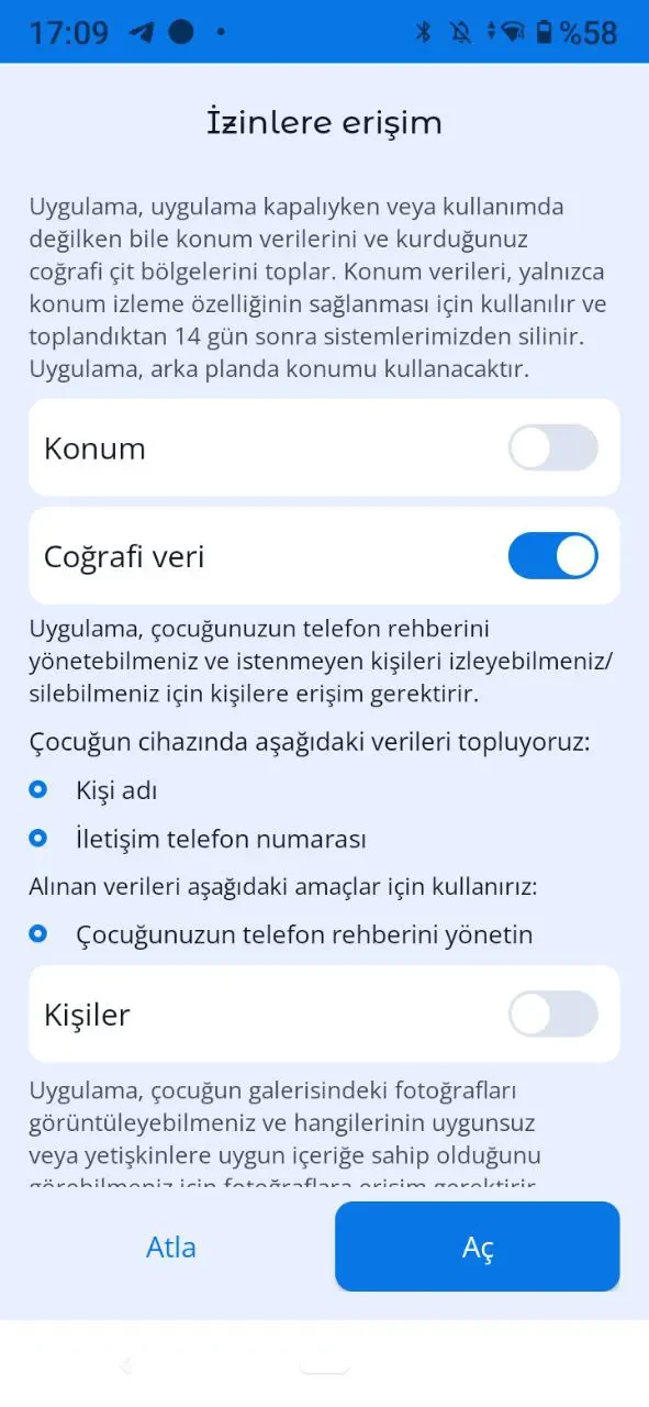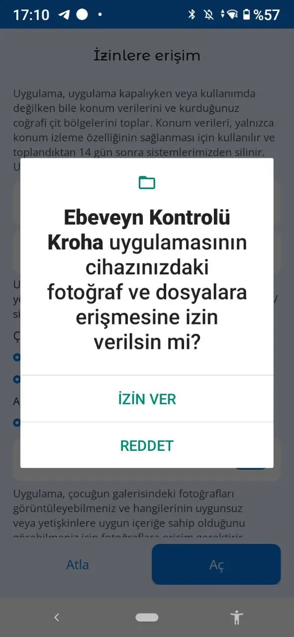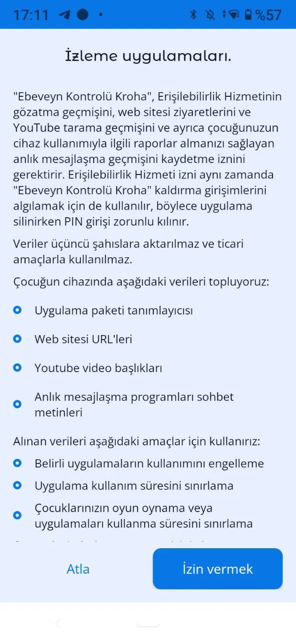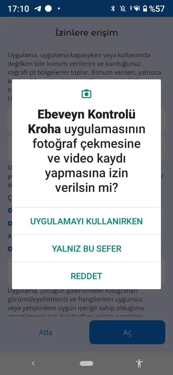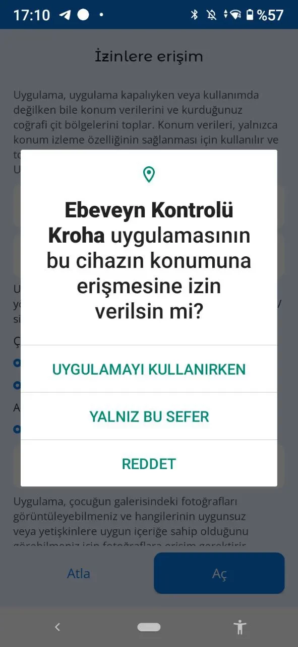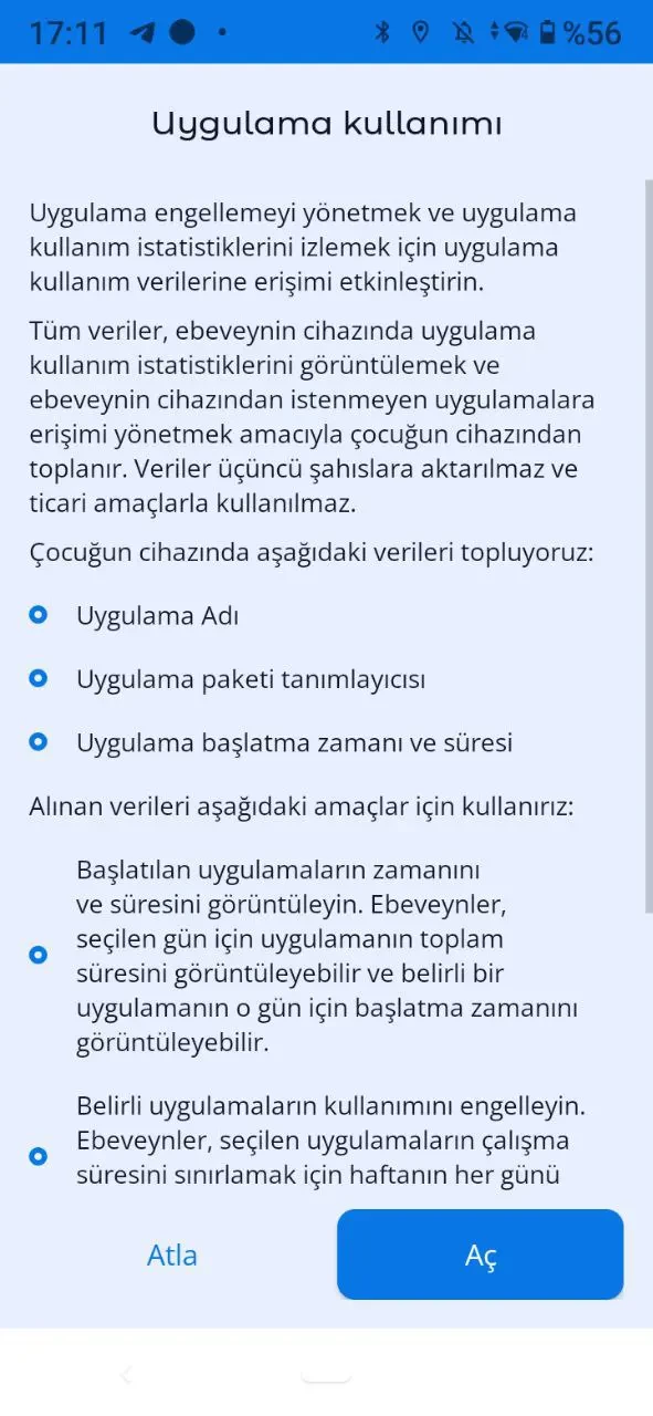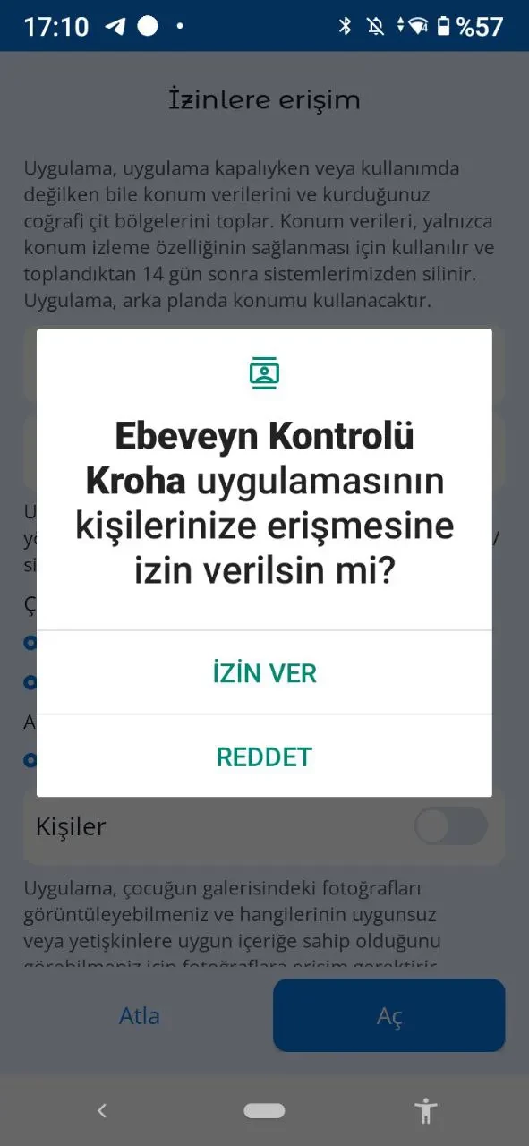 Ebeveyn denetimi uygulamasının düzgün çalışabilmesi için, çocuğunuzun cihazını hesabınıza bağlarken izinleri ayarlamanız gerekir.