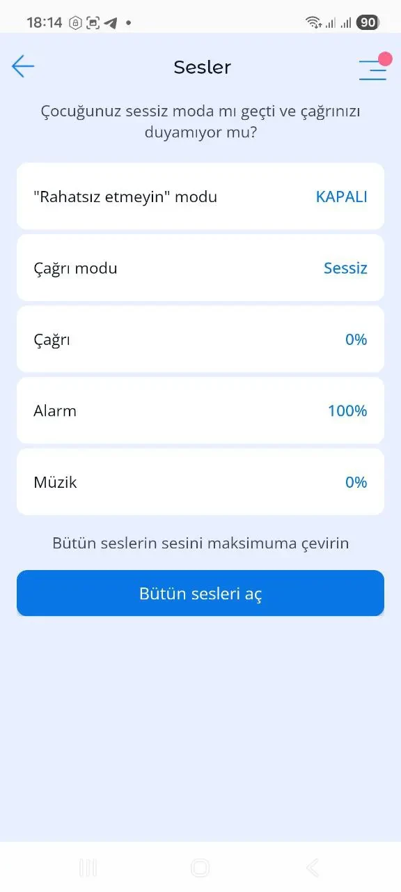 • Çocuğun cihazında akıllı telefon sesi açabilir.