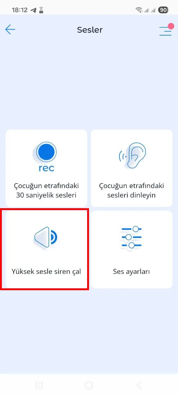 Bu özellik, evde veya bahçede akıllı telefonunuzu bulamıyorsanız cihazınızın yerini belirlemenize yardımcı olmak için tasarlanmıştır. Yüksek sesli sireni etkinleştir düğmesine basın; siren sesi çocuğun cihazında çalacaktır.