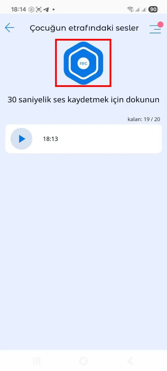 - Çocuğun cihazından 30 saniyelik ses kaydı yapın.