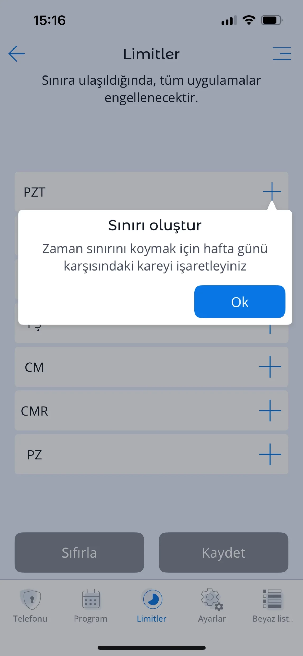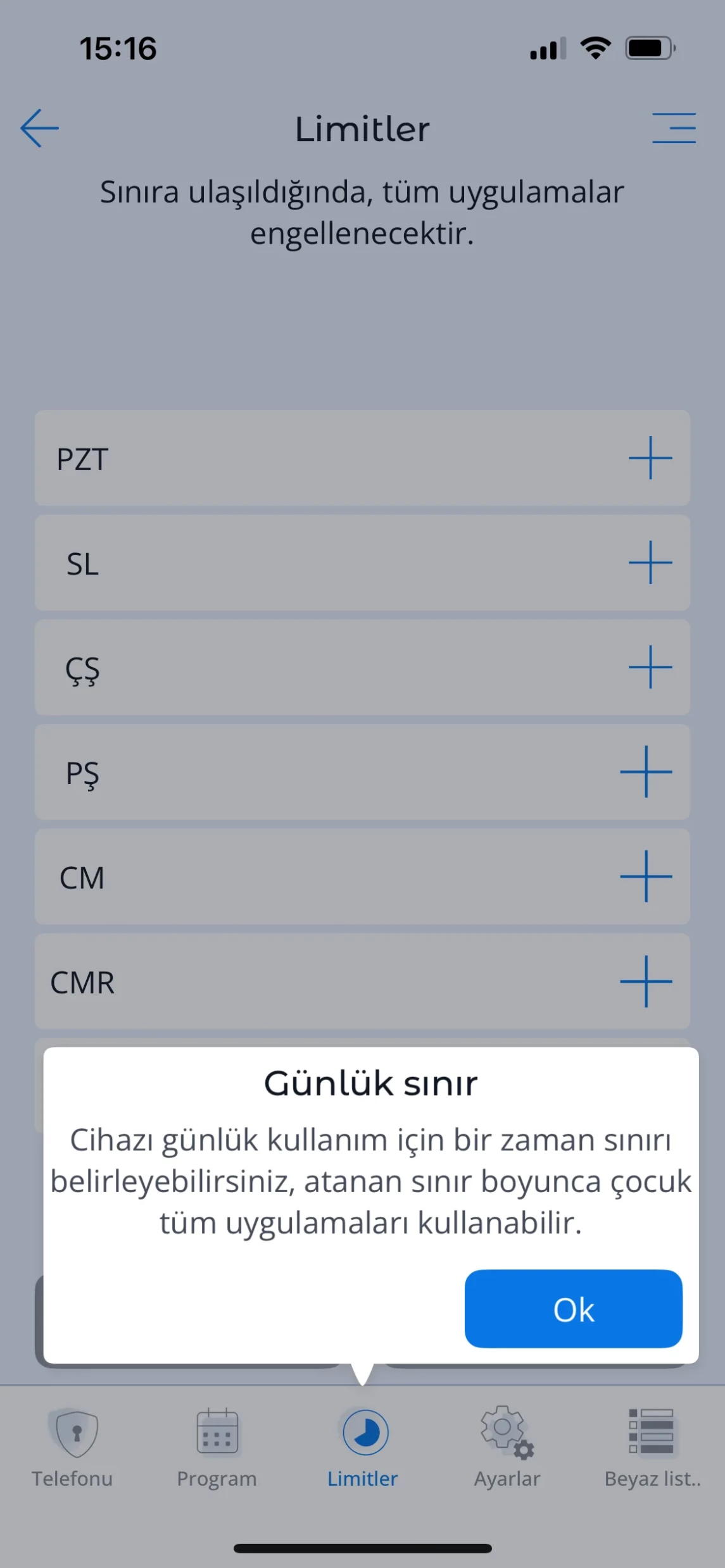 Programlar, günlük sınırlar ve zamanlayıcı özellikleri