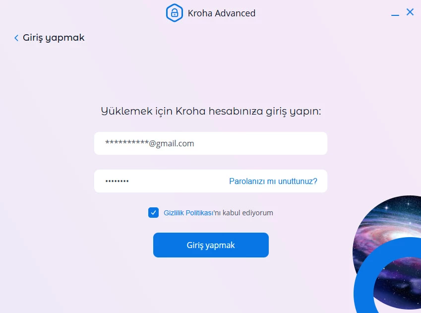 1. Web sitemize https://advanced.parental-control.net/tr adresine gidin ve bilgisayarınıza veya dizüstü bilgisayarınıza Kroha Advanced ebeveyn denetimi uygulamasını yükleyin.
