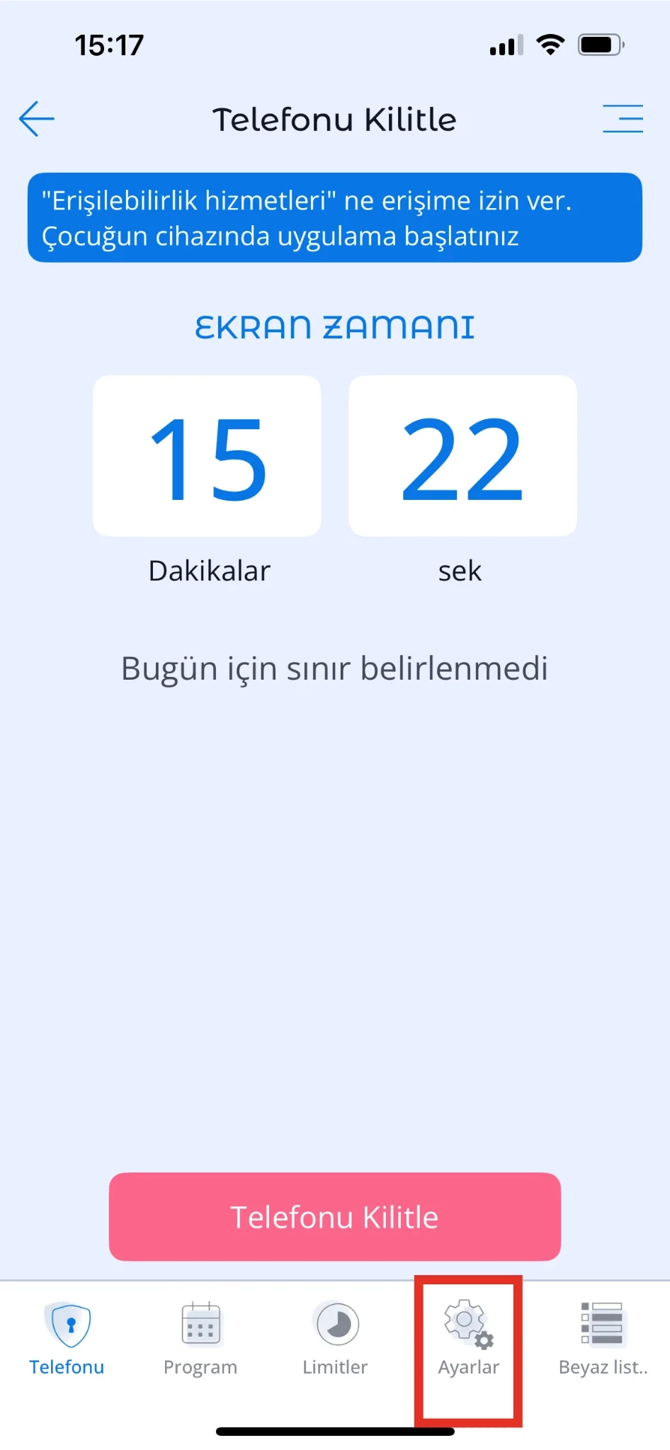 Ardından ebeveyn cihazınızda Kroha uygulamasını açın > Cihaz listesinde çocuğun cihazını seçin > Telefon Kilidi bölümüne gidin > Ayarlar sekmesine geçin > Safari Engelle seçeneğinin yanındaki anahtarı açın.