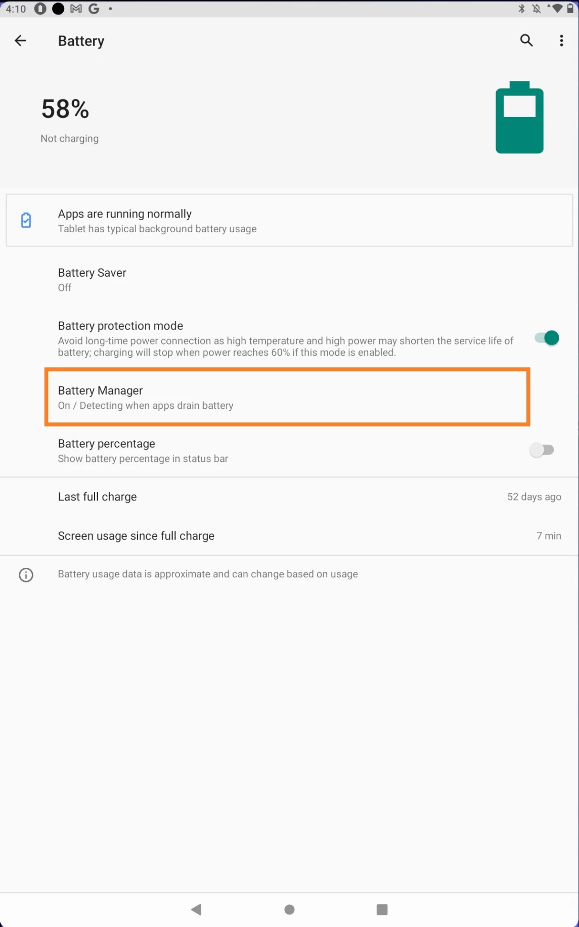 - Çocuğunuzun cihazında Ayarlar'ı açın > Pil'e gidin > Pil Yöneticisi > Pil Yöneticisi > Kapatın.