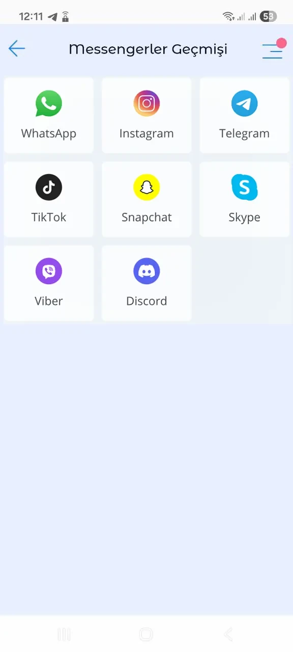 Bu işlev, 13 popüler mesajlaşma uygulamasında (Telegram, Viber, Whatsapp, Tiktok, Instagram, Snapchat, Skype, Discord, Vk, Line, Signal, Tinder, Badoo) çocuğun iletişimlerini görüntülemenizi sağlar. Ayrıca, kısa mesaj (SMS) geçmişi ve geçmişi görüntüleme özellikleri Kroha telefon izleme uygulaması sayesinde sunulmaktadır. Ekran, yalnızca çocuğun akıllı telefonuna kurulmuş olan uygulamaları gösterir.
