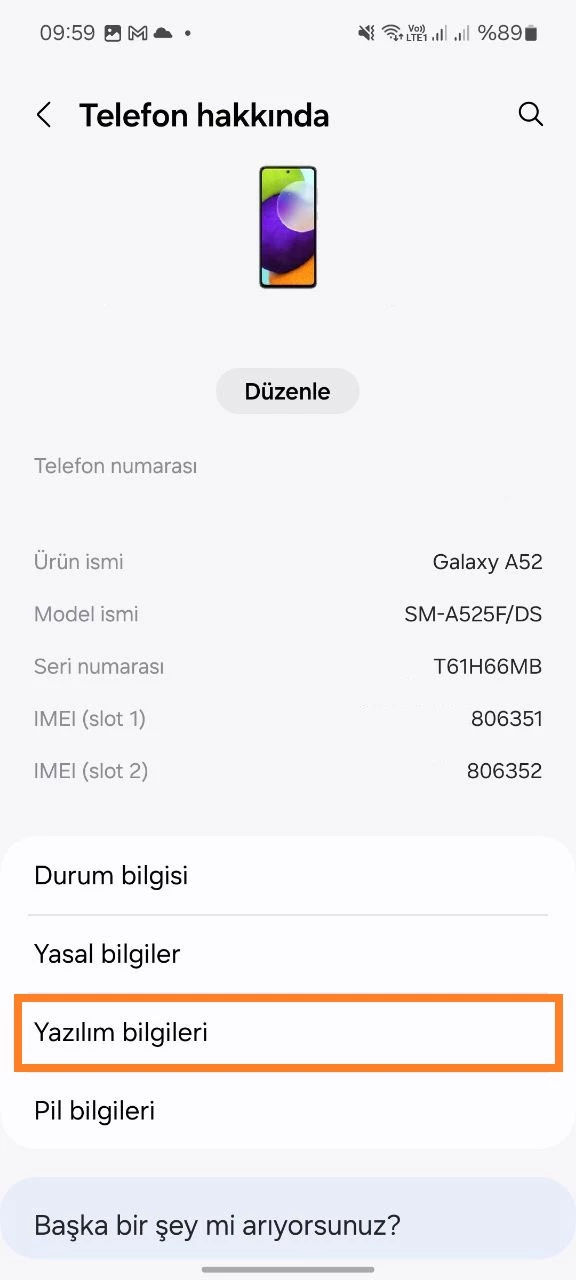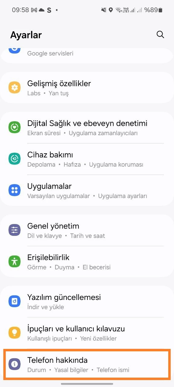 - Telefon Hakkında bölümüne gidin;