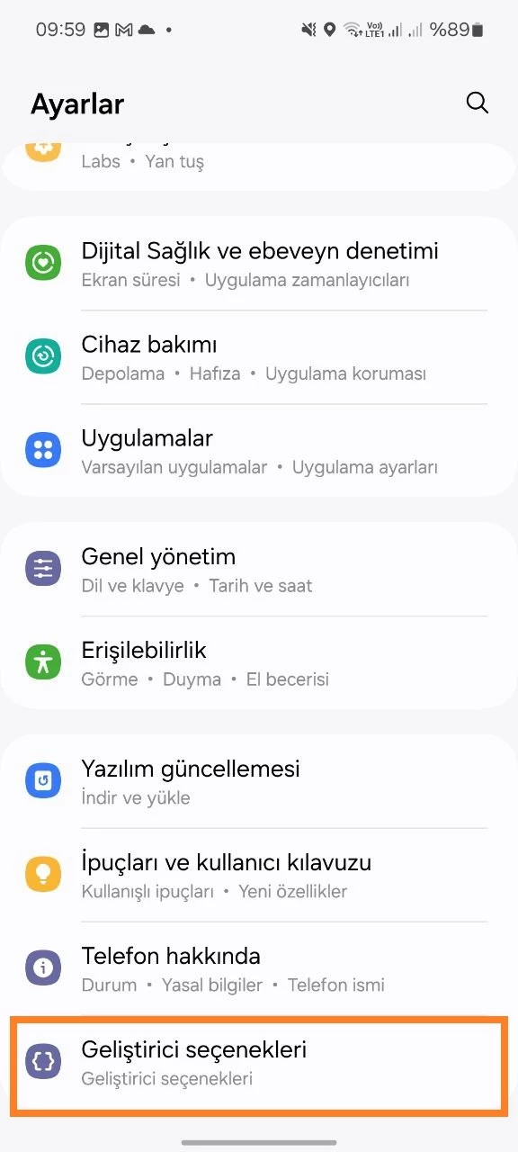 Samsung cihazında geliştirici moduna nasıl geçebilirim?