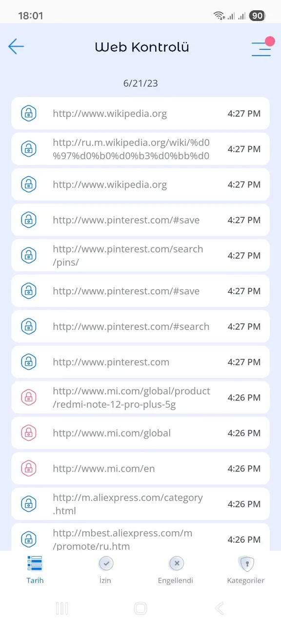 - Çocuğun ziyaret ettiği web sitelerinin tarayıcı geçmişini görüntüleme;