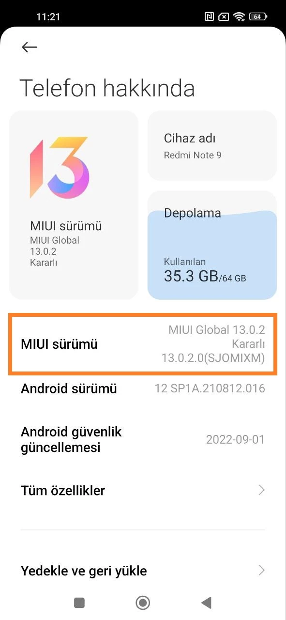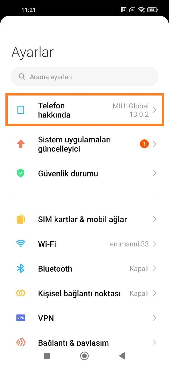 - “Telefon Hakkında” bölümüne gidin;