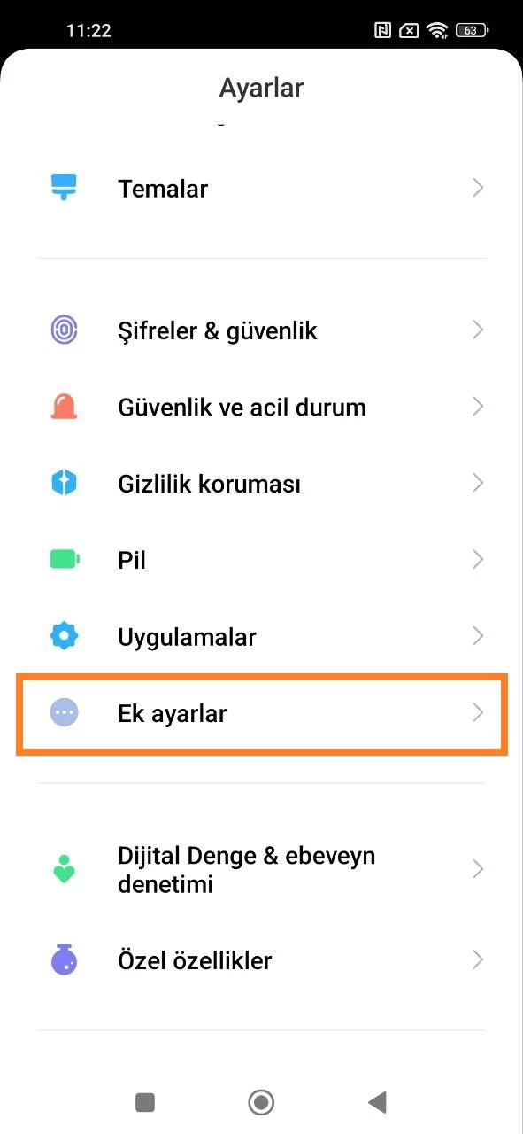- “Ek Ayarlar” bölümüne gidin;