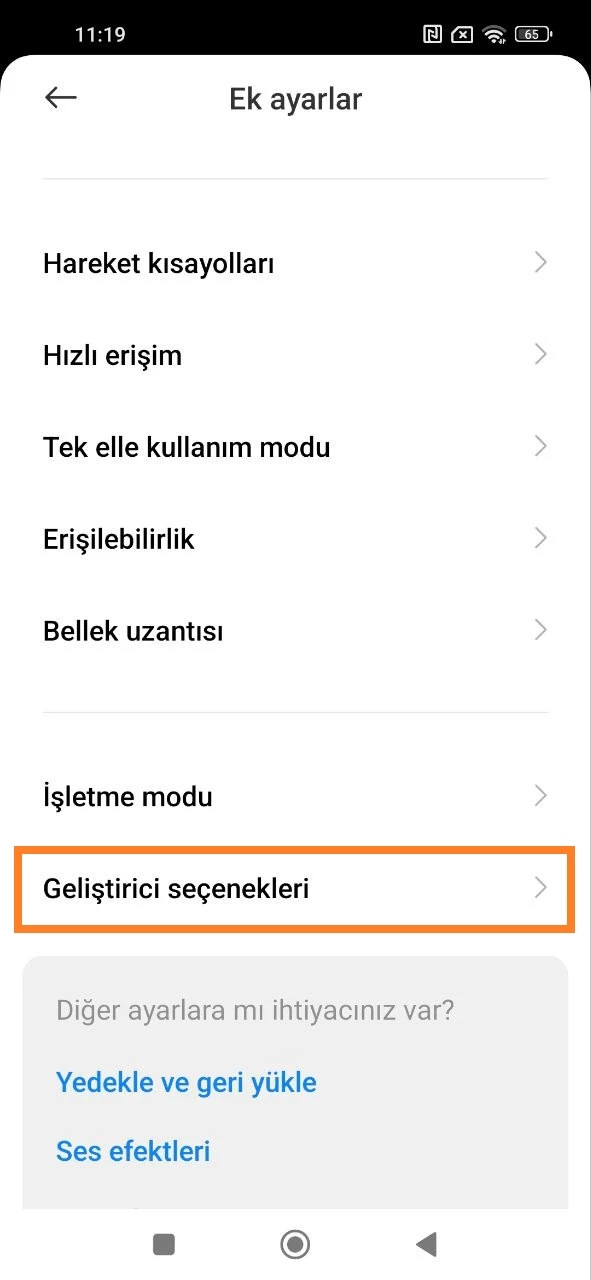 Geliştirici seçeneklerine geçmek için: