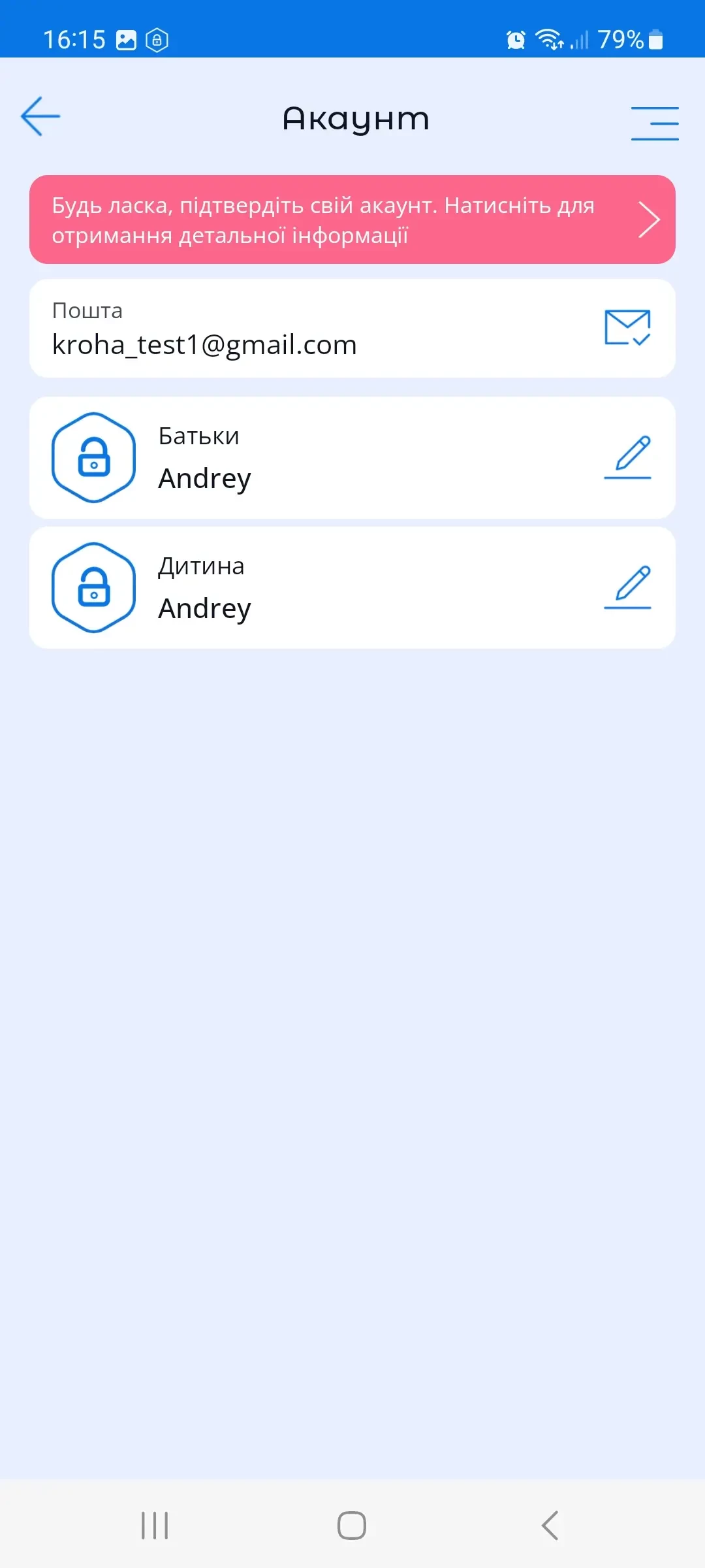 1. Пристрої. При виборі цього пункту меню користувач потрапляє на головний екран програми зі списком контрольованих дитячих пристроїв.