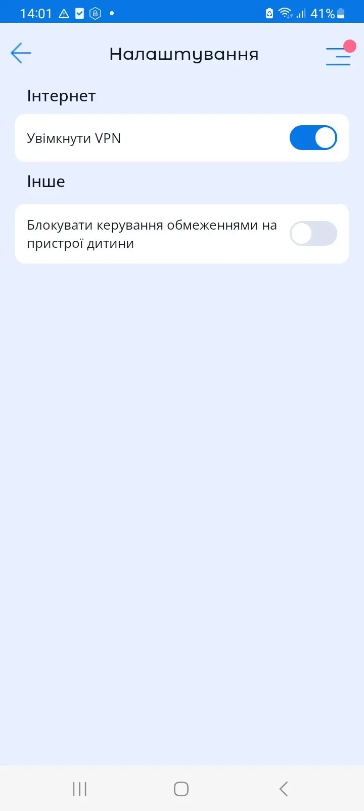 У розділі "Налаштування" у батьків є можливість увімкнути "Безпечний інтернет" та "Заблокувати керування обмеженнями на пристрої".