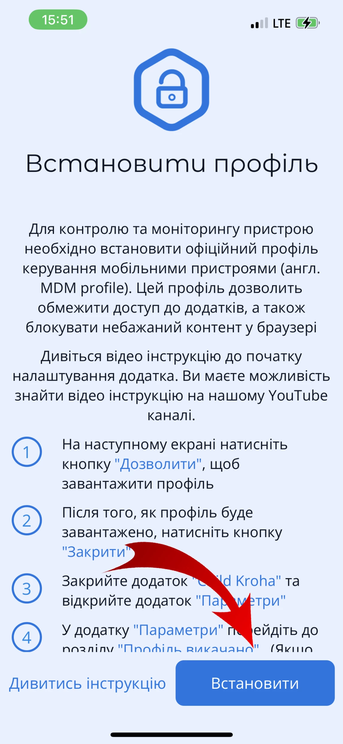 Далі виконайте вказівки, щоб встановити профіль керування мобільним пристроєм (MDM profile). Що таке Apple MDM профіль?