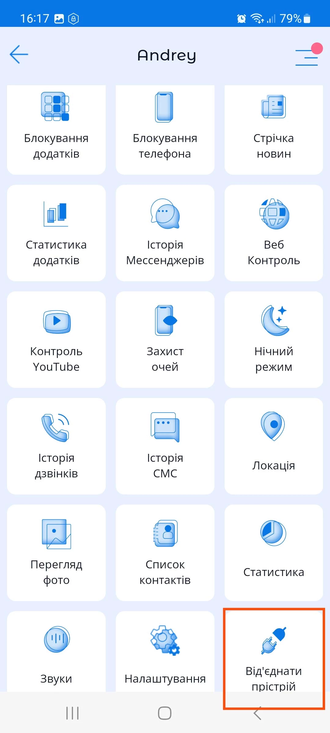 При необхідності, є можливість від'єднати певний пристрій від свого облікового запису, при цьому всі дані, отримані раніше, збережуться на сервері.