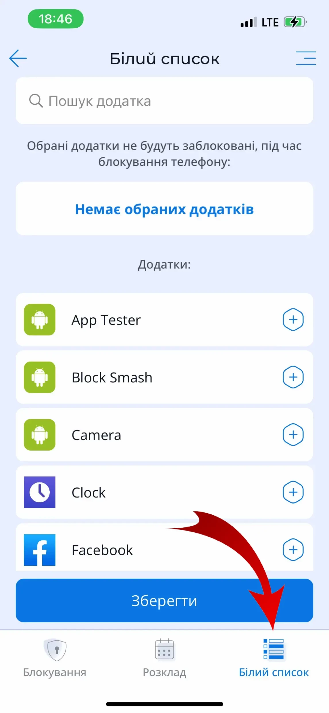 Якщо батьки хочуть використовувати функцію "Блокування телефону", але потрібно, щоб певні застосунки працювали, ці застосунки необхідно внести в білий список і тоді всі застосунки на смартфоні дитини будуть заблоковані, крім тих, що знаходяться у дозволеному "білому списку".