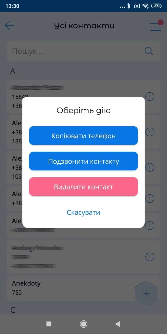 - додати контакт;