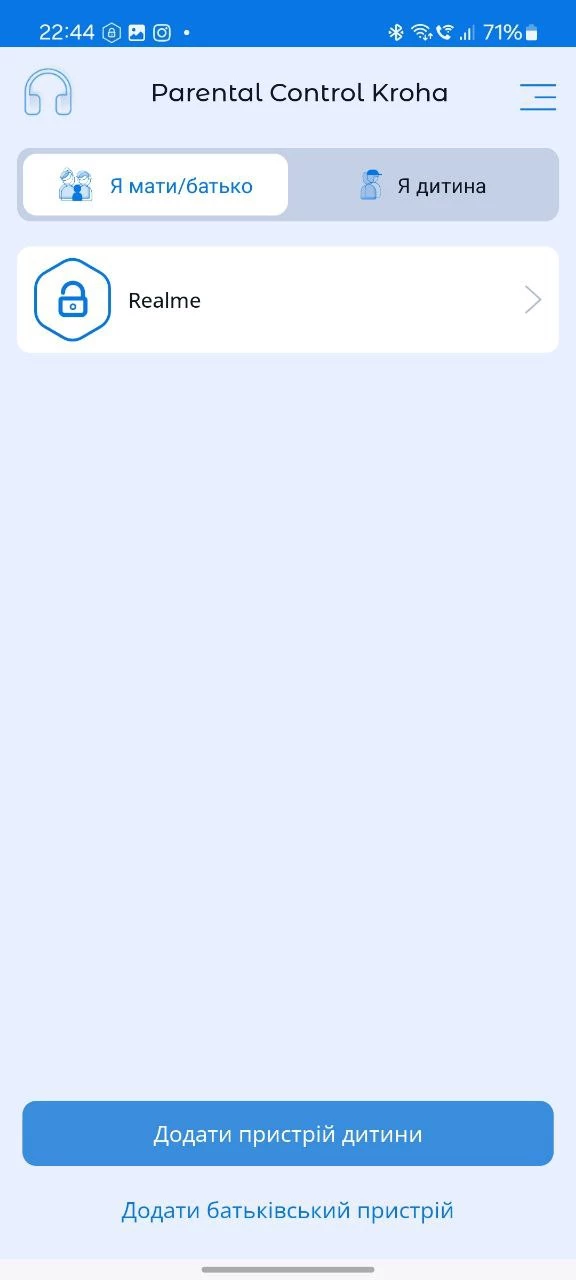 2. Відкрийте застосунок «Батьківський Контроль Kroha» на Вашому смартфоні;