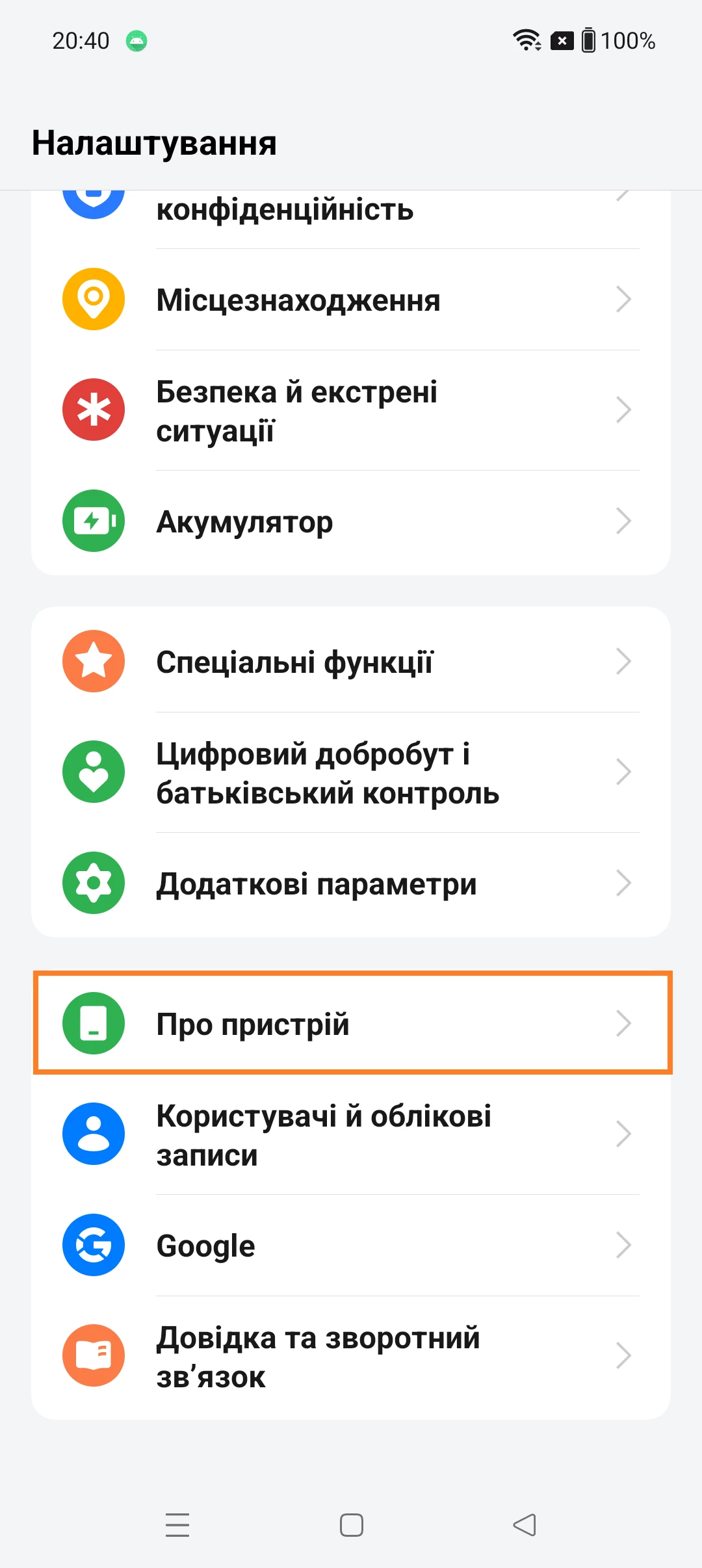 - Перейдіть до розділу "Про пристрій".