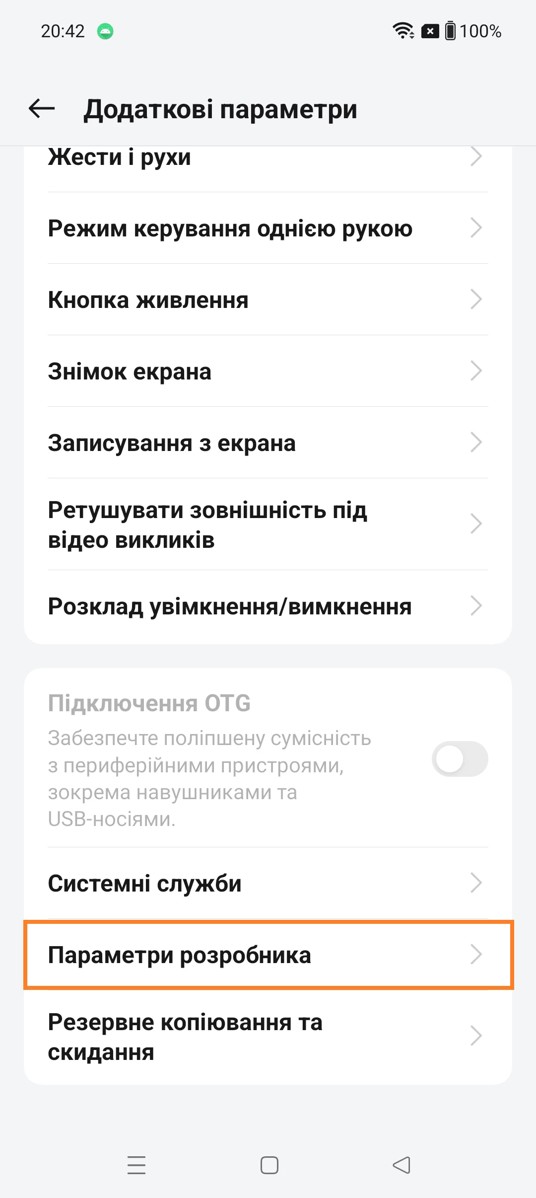 Далі, щоб перейти до параметрів розробника:
