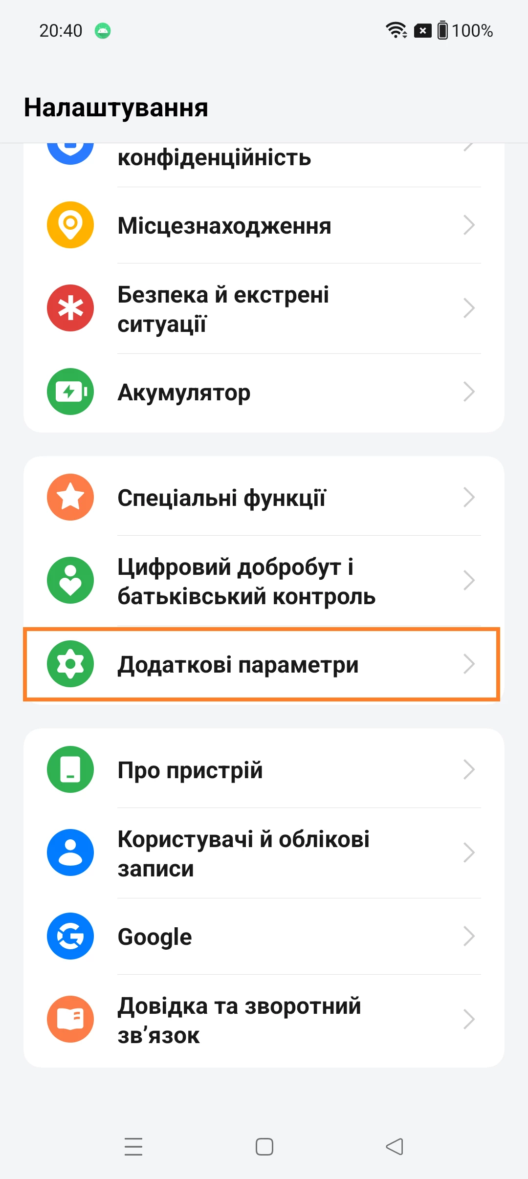 - Перейдіть до розділу "Додаткові параметри" або "Система".