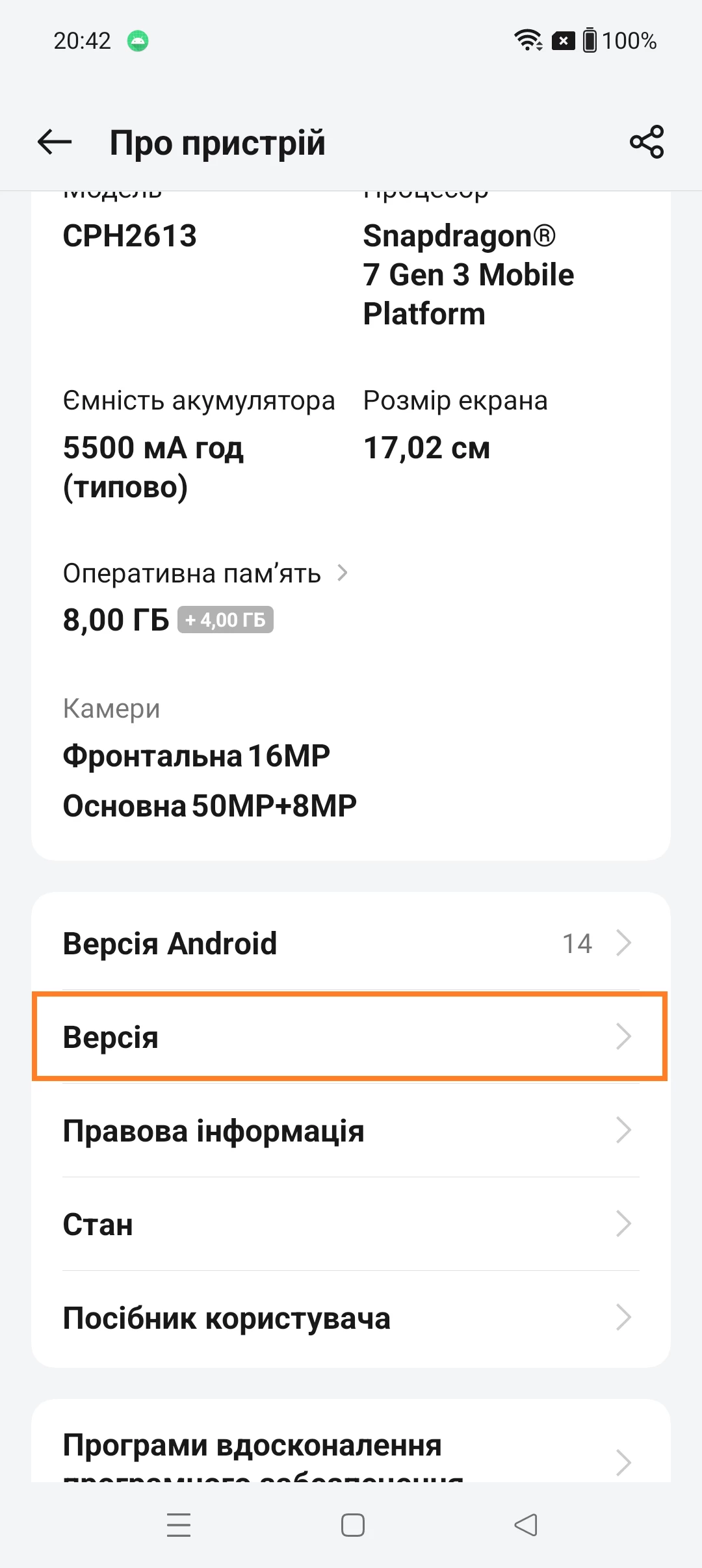 - Перейдіть до пункту "Версія".