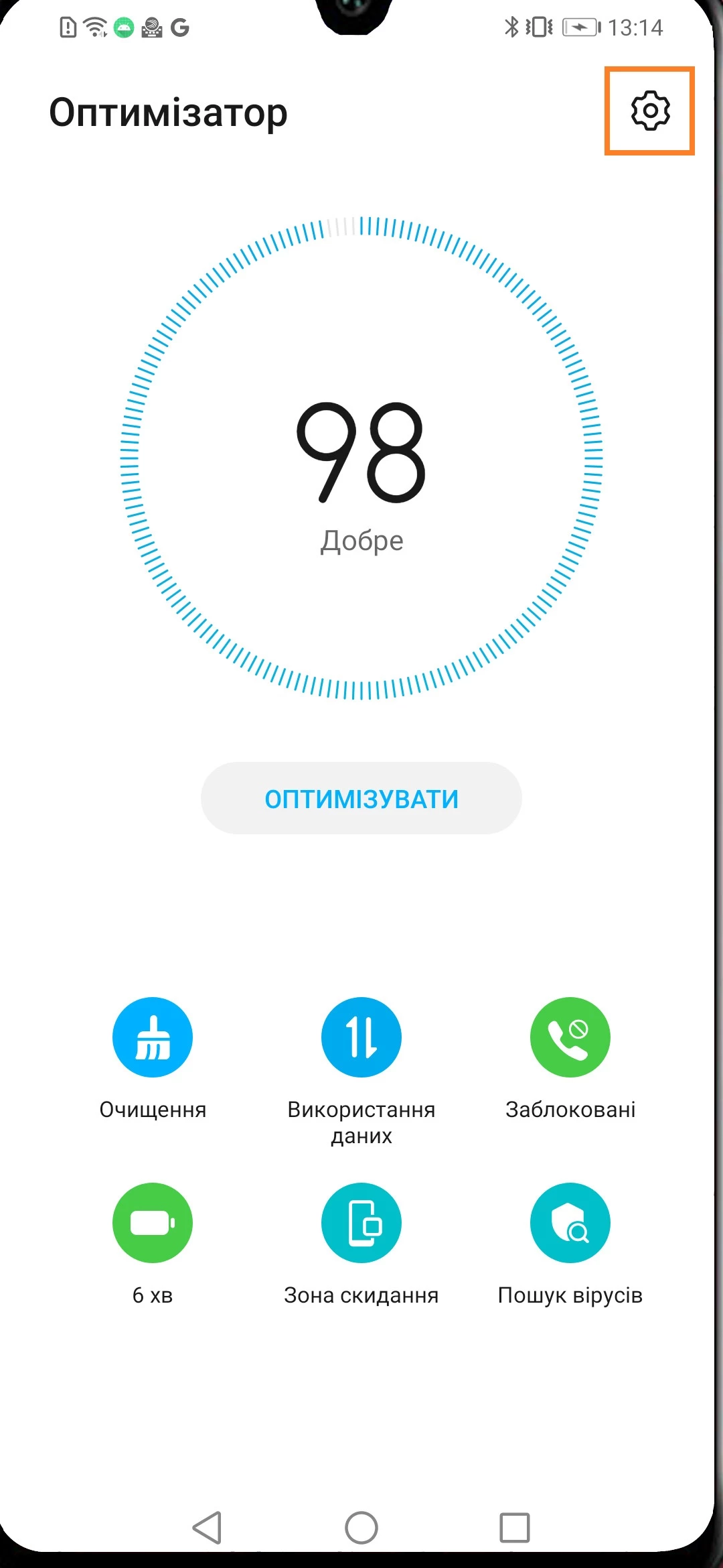 - Відкрийте програму "Диспетчер телефону" (Оптимізатор) > перейдіть до пункту "Очищення" або натисніть іконку "Параметри" у правому верхньому куті > вимкніть "Автоочищення".
