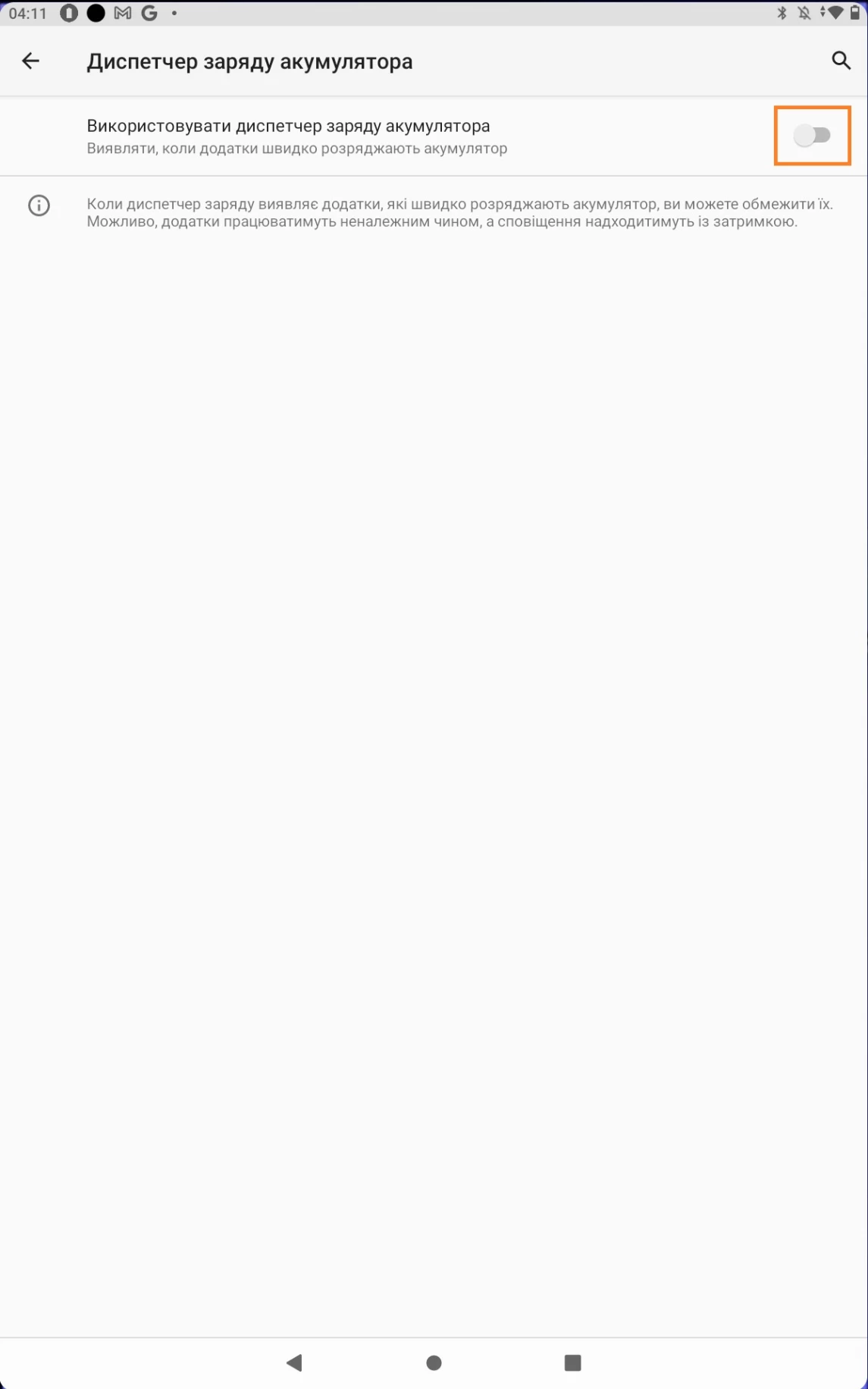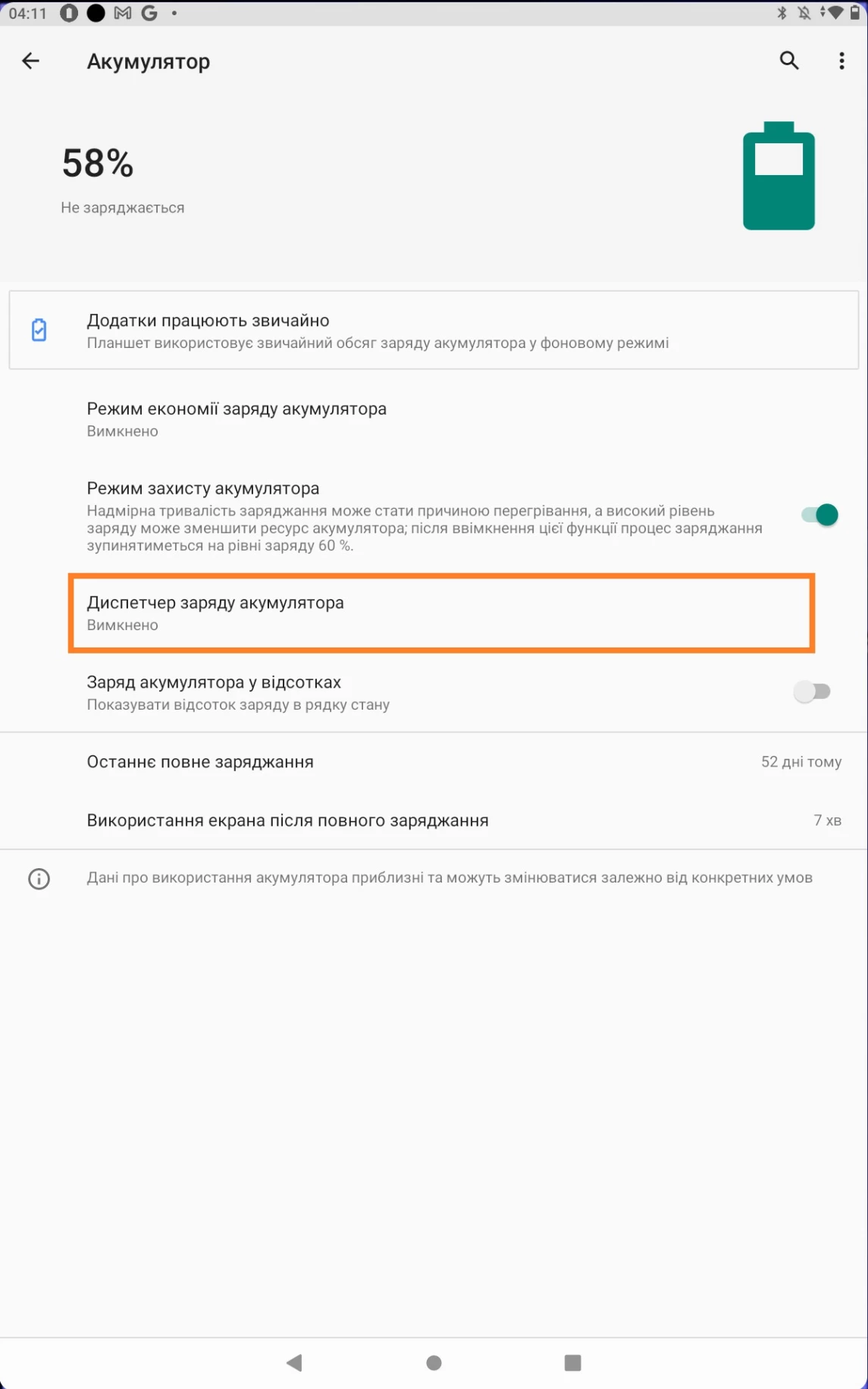 - Відкрийте "Налаштування" на пристрої дитини > розділ "Батарея" > Менеджер акумулятора > Battery Manager > вимкнути.