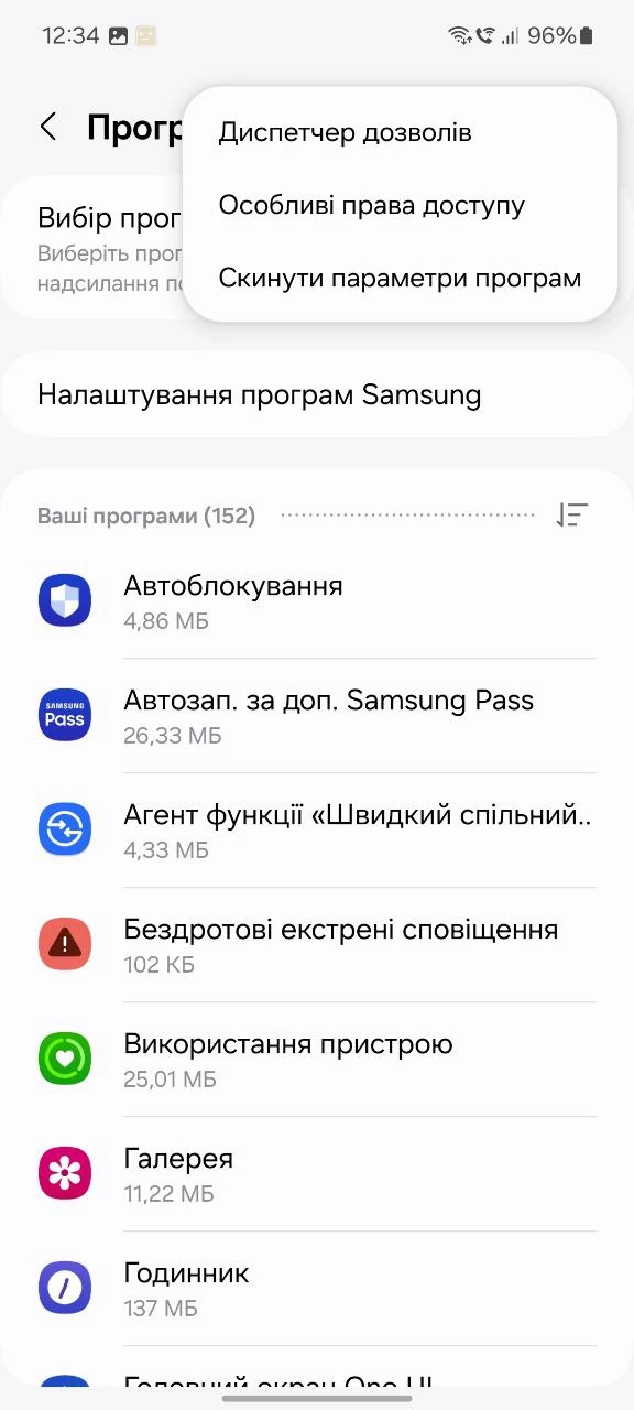 - Відкрийте "Налаштування" на пристрої дитини > відкрийте розділ "Програми" > у верхньому куті екрана натисніть на іконку меню (три вертикальні точки) > виберіть пункт "Особливі права доступу" > перейдіть до "Оптимізація витрати батареї" > знайдіть у списку Parental Control Kroha та вимкніть перемикач (не оптимізувати);