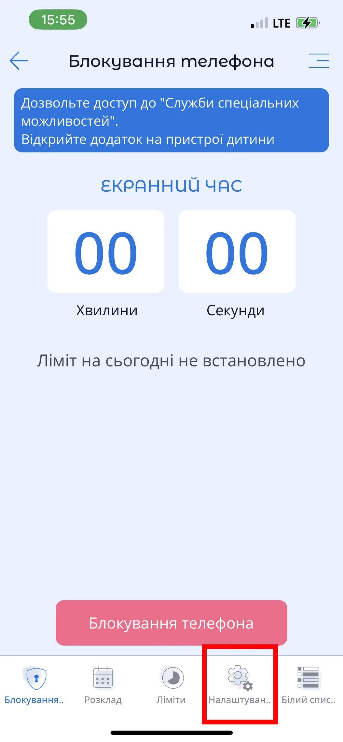 Після цього, відкрийте застосунок Kroha на батьківському пристрої > виберіть пристрій дитини у списку пристроїв > перейдіть до розділу "Блокування телефону" > вкладка "Налаштування" > увімкніть перемикач навпроти "Блокувати Safari".