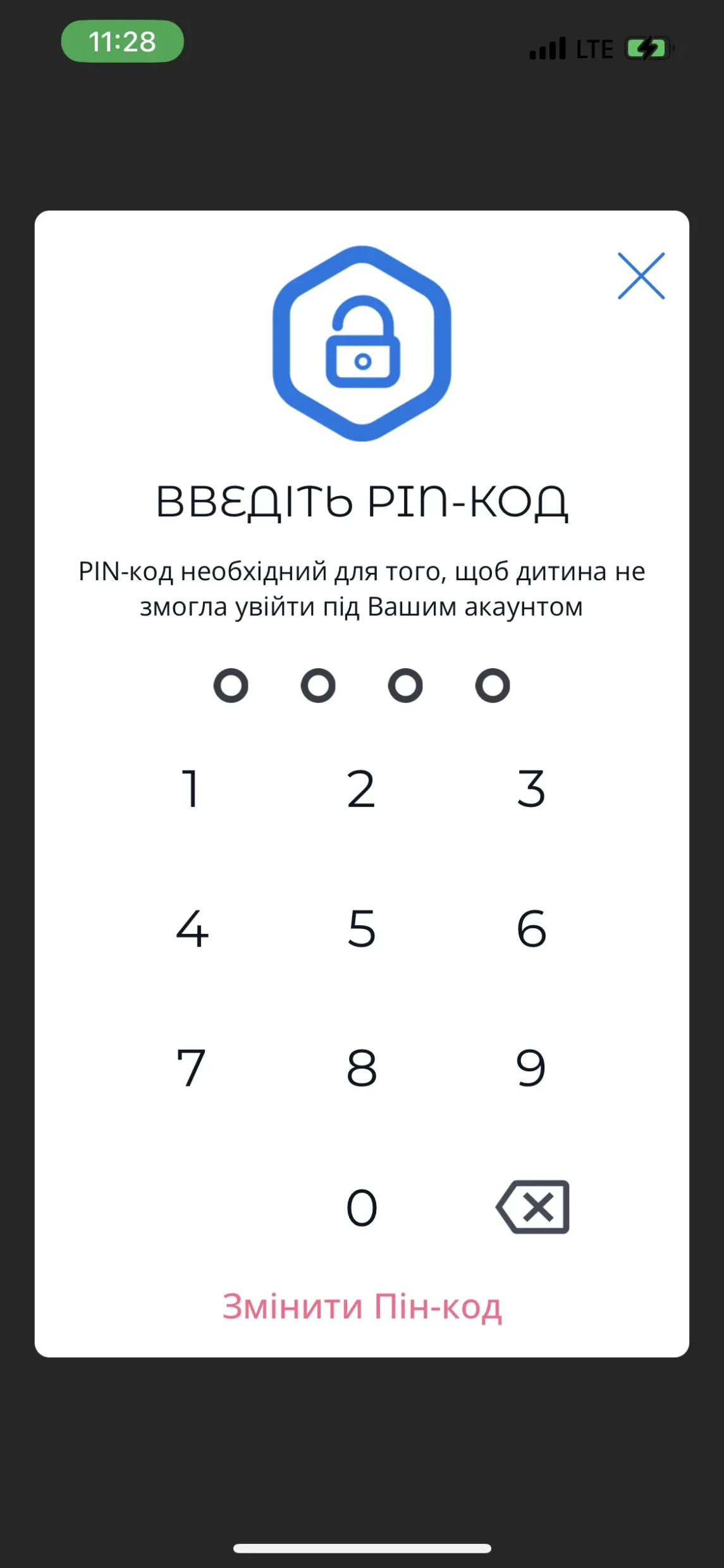 2. На екрані введення коду, що з'явиться, натиснути опцію «Змінити PIN-код», розташовану в нижній його частині.
