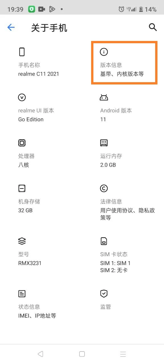 进入关于手机界面;