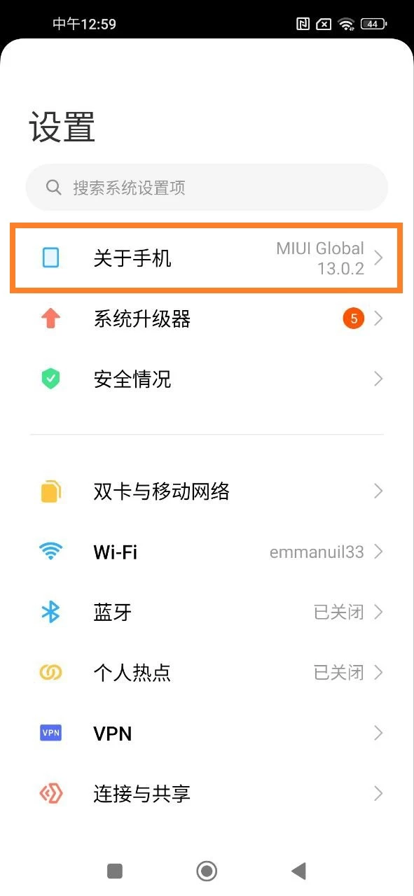 进入关于手机页面;
