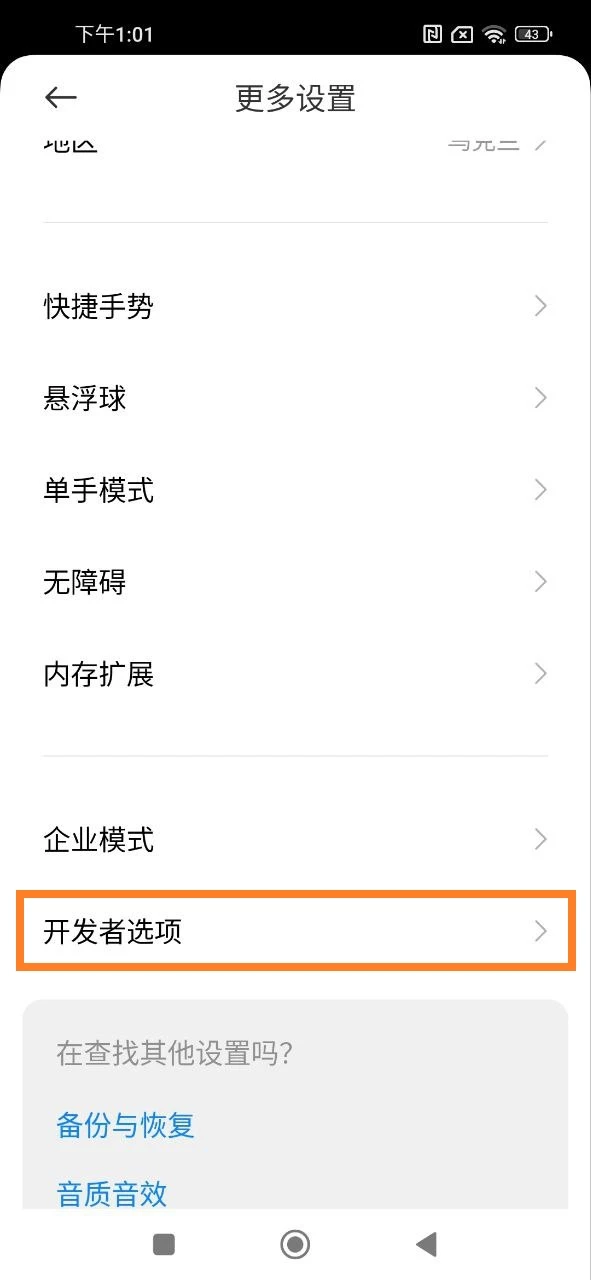 接下来,进入开发者选项:
