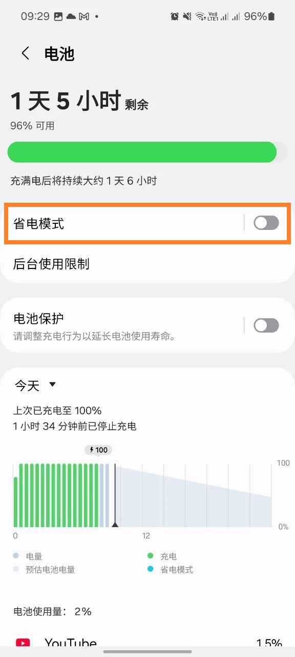 - 在您孩子的设备上打开设置 > 设备维护 > 电池 > 节能模式 > 关闭。