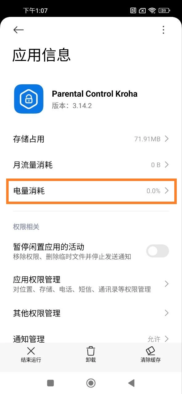 - 省电设置:在您孩子的设备上打开设置应用 > 打开应用程序 > 管理应用 > 找到Kroha 家长控制应用程序 > 打开省电模式 > 选择“不限制”。
