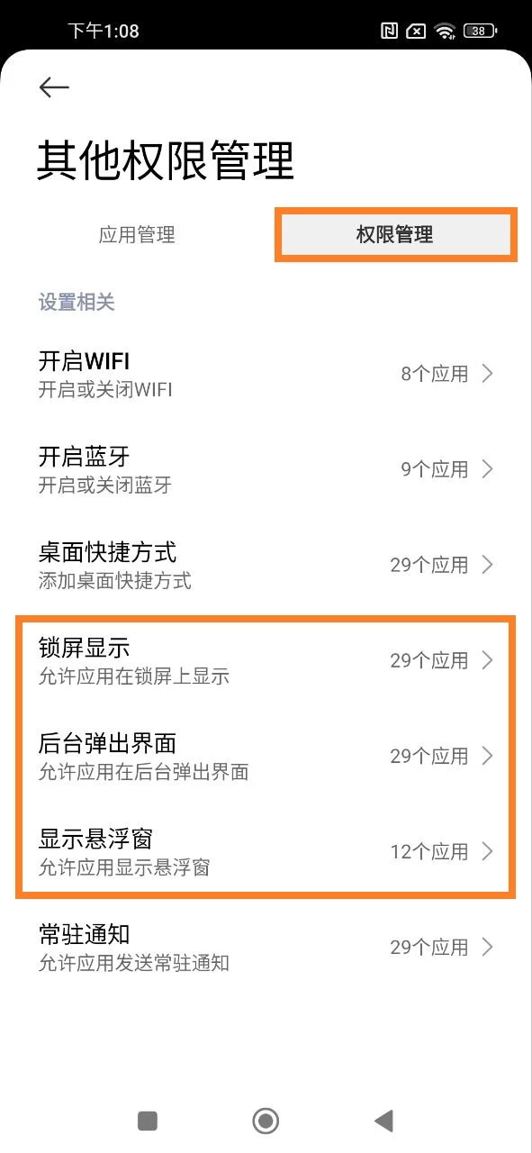 - 在您孩子的设备上打开设置应用 > 打开应用程序部分 > 权限 > 其他权限 > 权限选项卡 > 分别进入锁屏、后台运行时显示弹出窗口、弹出窗口权限,并为Kroha 家长控制应用程序启用相关权限。