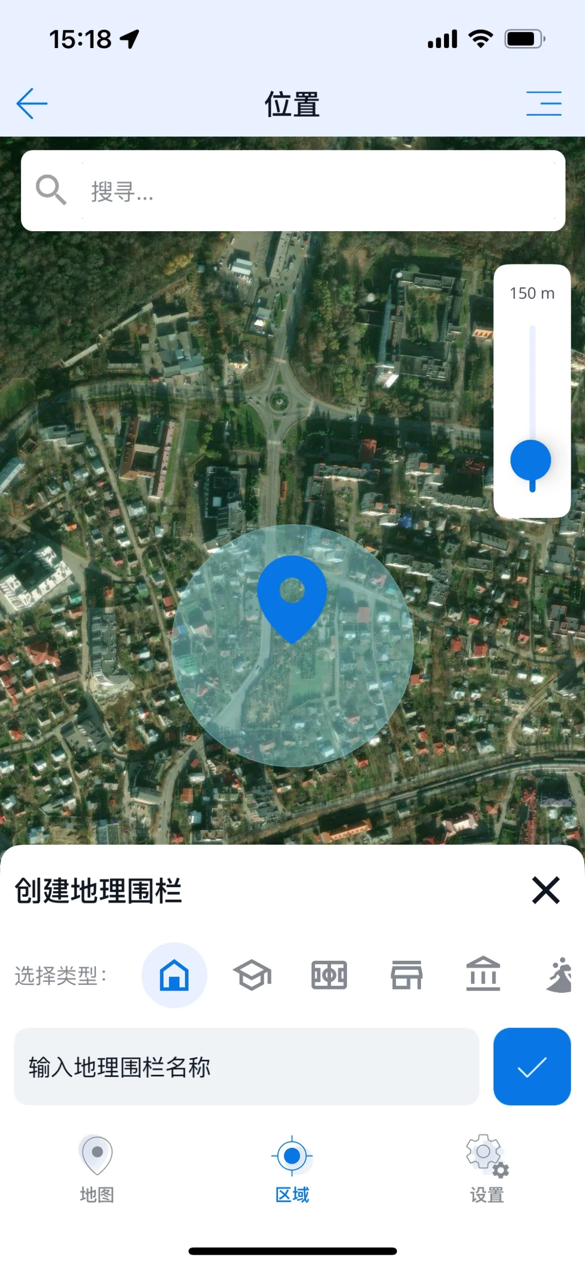 2. 点击“+”图标创建一个地理围栏区域。