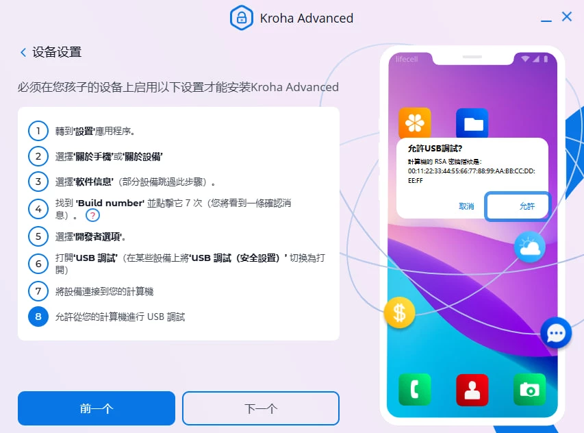 安装Kroha Advanced 家长控制应用程序时的问题